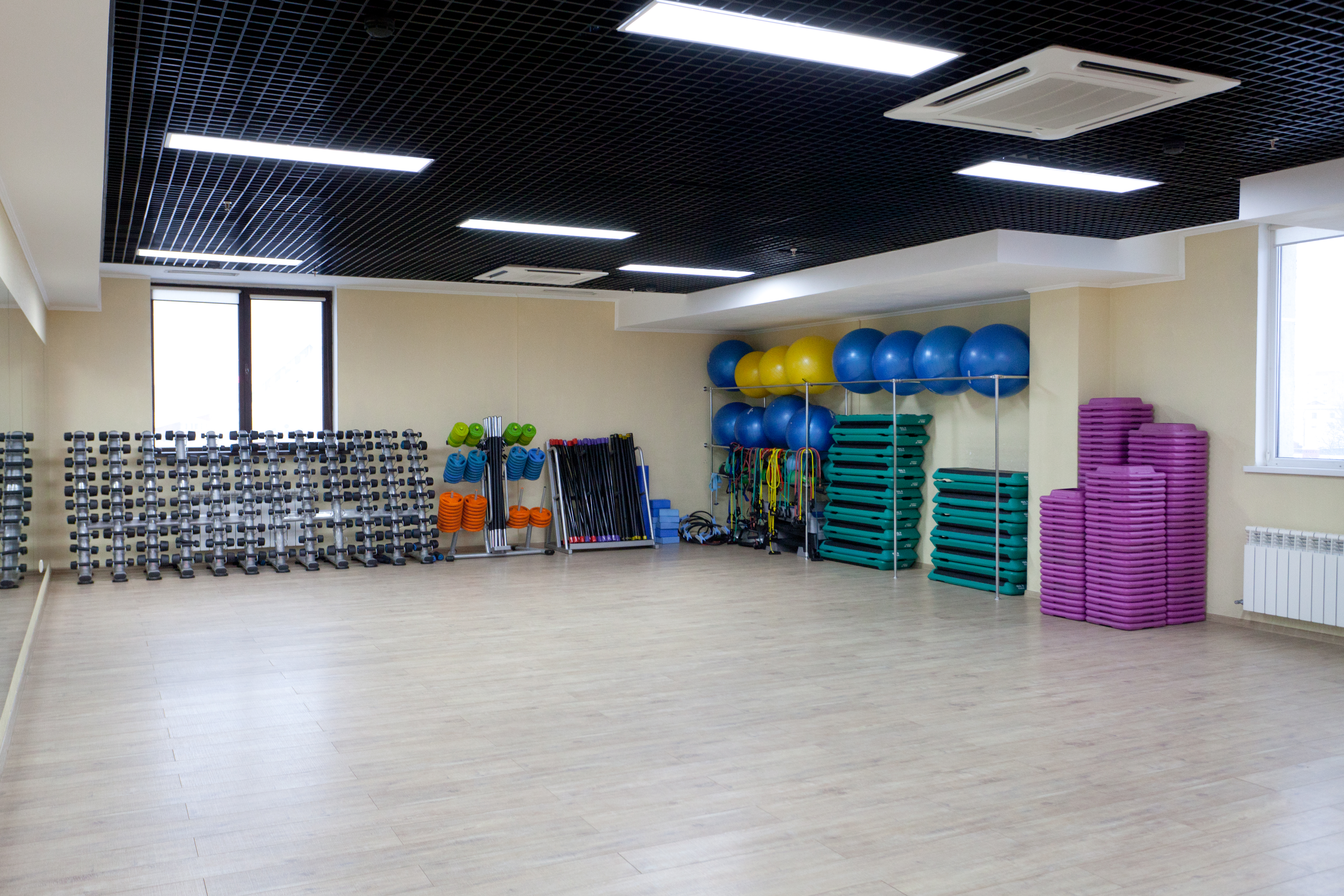 Большой выбор групповых (аэробные, силовые, танцевальные, «разумное тело», велоаэробика, аквааэробика, единоборства) и индивидуальных программ. В расписании представлено более 90 занятий в неделю.
